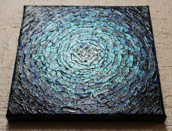 Arbeiten mit einem Messer in Acrylfarbe (Pébéo-Studio) auf einem Leinwandrahmen aus Holz (100% Baumwolle).