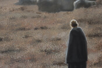 In dieser Arbeit habe ich die Unermesslichkeit und Einsamkeit offener Landschaften mit der Öltechnik eingefangen. Jeder Pinselstrich soll die melancholische Stille und heitere Schönheit der Natur hervorrufen, während die einsame Figur Selbstbeobachtung und menschliche Bedeutungslosigkeit angesichts der Unermesslichkeit der Welt darstellt. Dieses Gemälde lädt zum tiefen Nachdenken ein und verleiht jedem Raum, in dem es ausgestellt wird, eine kontemplative… und emotionale Atmosphäre. Dieses Gemälde ist Teil eines Projekts, das untersucht, wie die Ikonographie von Caspar D. Friedrich das Kino beeinflusst hat. Ich habe meine Referenz in Filmen gefunden, nicht in der Kunst von Caspar Friedrich. Dadurch entsteht ein Rundgang von der Malerei zum Kino und vom Kino zur Malerei. Ich habe vor, wieder mit der Malerei anzufangen und zu malen, was Sie daraus an Kino mitgenommen haben.