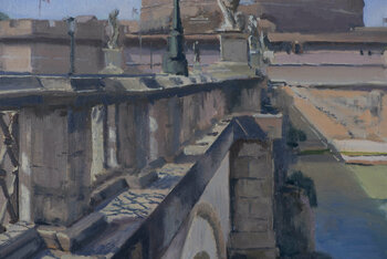 Mit dieser Ansicht des Schlosses von San Angelo in Rom führt er uns in eine Reihe von Werken aus dem Jahr 2020 ein, in denen eine Untersuchung dieser Architektur mit verschiedenen Gesichtspunkten beginnt.