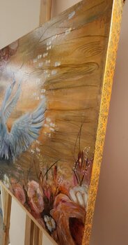 Karine Jeuffroy, eine leidenschaftliche Malerin, die sich zunächst autodidaktisch weiterbildete und später im Mastery Program des Milan Institute ihre Fähigkeiten verfeinerte, arbeitet vorwiegend mit Mischtechniken und kombiniert Tusche, Acrylfarben, Ölfarben, Folien und Blattgold. Fließende und spontane Bewegungen prägen ihren sich entwickelnden, zunehmend abstrakten Stil, der von leuchtenden Farben und schimmerndem Licht geprägt ist und an die magischen Momente der Natur erinnert. Mit ihrer Kunst möchte sie Freude, Staunen und Dankbarkeit wecken und ein tiefes Gefühl der Verbundenheit und Verantwortung gegenüber der zerbrechlichen Schönheit der Welt fördern.
