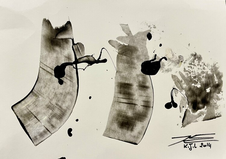Tusche, Harz auf Papier