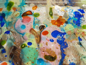 Harz, Pigmente auf Leinwand