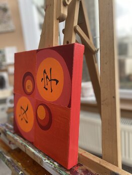 „Reziprozität (Yin und Yang)“ ist eine Studie, die den wechselseitigen Austausch gegensätzlicher Kräfte aus geometrischer Perspektive untersucht. Die zentralen chinesischen Schriftzeichen (汉字, Hànzì) dienen als typografischer Anker und verankern die Komposition in einer spezifischen kulturellen und philosophischen Tradition. Ich habe eine Palette verschiedener Rot- und Orangetöne verwendet, um auf die symbolische Bedeutung dieser Farben in der chinesischen… Tradition als Träger von Vitalität und struktureller Ordnung hinzuweisen. Die Verwendung ineinander verschachtelter Kreise in einem Quadrantenlayout veranschaulicht die Wechselwirkung von Yin und Yang, wobei jedes Element nur in Beziehung zu seinem Gegenstück existiert. Subtile Texturübergänge auf der Leinwandoberfläche heben die Reibung und den Zusammenhalt hervor, die für das Erreichen eines Gleichgewichtszustandes notwendig sind. Letztlich fungiert das Werk als formale Untersuchung der Dynamik des Gleichgewichts und der Beständigkeit der Dualität.