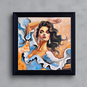Dieses Originalgemälde (30 x 30 cm) fängt die Eleganz und Leidenschaft einer spanischen Tänzerin in Bewegung ein. Fließende Blautöne, warme Lichtreflexe und ausdrucksstarke Pinselstriche erzeugen Rhythmus und Anmut und machen dieses Kunstwerk zu einem eindrucksvollen Blickfang für moderne, unkonventionelle oder klassische Interieurs. Perfekt für Kunstsammler, Tanzliebhaber und alle, die nach einzigartiger Wandkunst mit Seele und Dynamik suchen.