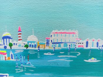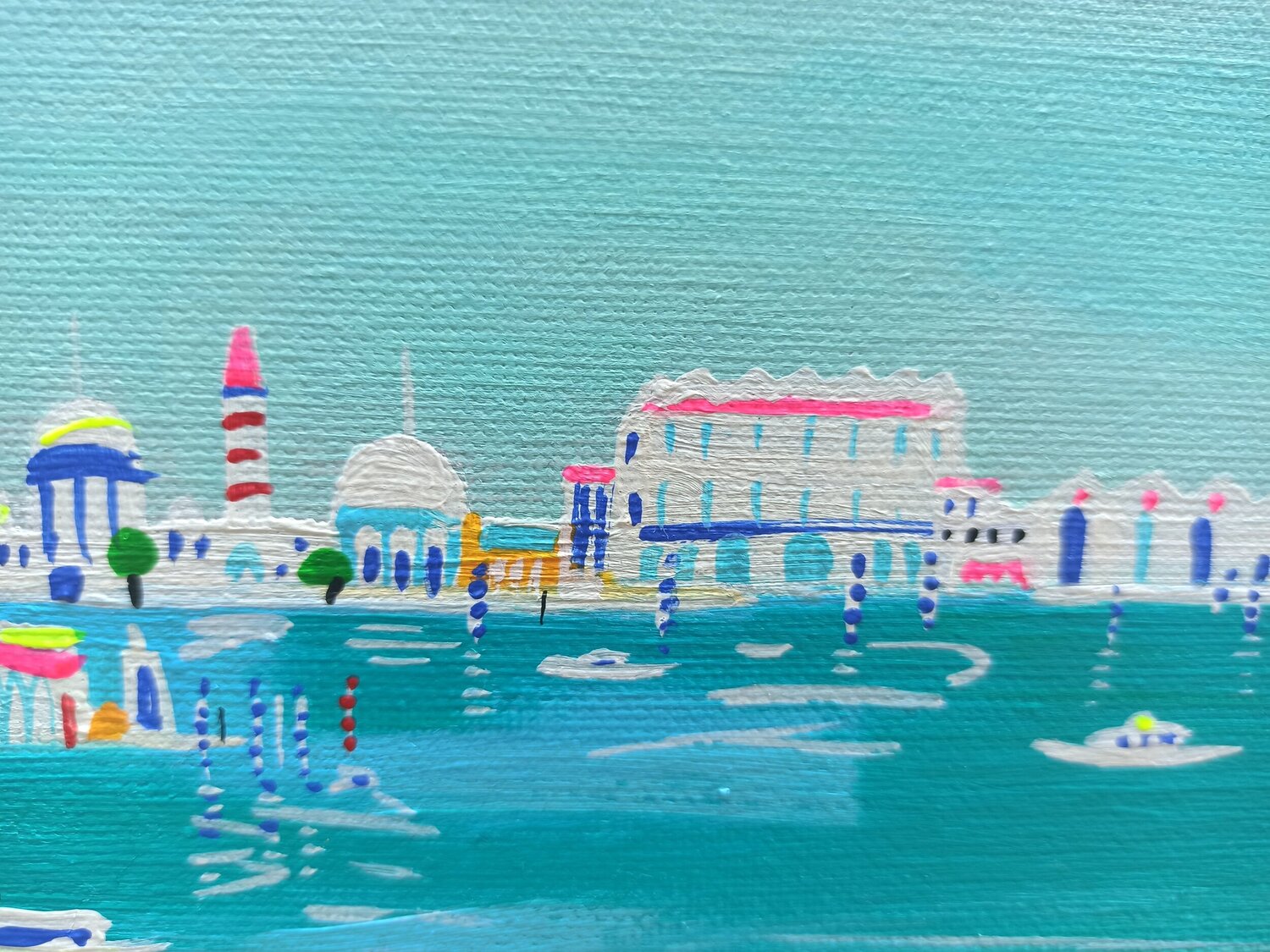 In diesem Acrylstück habe ich versucht, die ruhige und dennoch lebendige Energie eines Morgens am Wasser einzufangen, wo der Tanz aus Licht und Farbe die Seele erweckt. Sie können spüren, wie das sanfte Summen der Boote den Tag mit Leben erfüllt. Es ist ein Liebesbrief an die ruhigen Momente, nach denen wir uns sehnen, und ich habe jeden Strich mit dem Glück erfüllt, das ein solcher Ort verspricht. Dieses Kunstwerk soll eine Essenz der Ruhe und Freude… in jeden Raum bringen, einen ewigen Morgen, der Sie täglich begrüßt.
