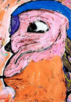 In diesem Werk vereine ich Acryl und Öl in einer leidenschaftlichen Explosion der Farben und Formen, um tiefe Emotionen und rohe Energie zu vermitteln. Mein Stil bewegt sich zwischen Naivität und Art Brut, mit einem Hauch von Expressionismus, was ihm eine kraftvolle figurative Qualität verleiht. Die Arbeit auf Papier spiegelt eine ungezähmte Seele wider, bringt Leben und dynamische Intensität in jeden Raum.