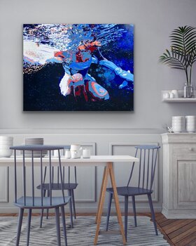 Für die Erstellung meiner Gemälde verwende ich Fotografien und Filmstills. Das Originalbild für dieses Gemälde wurde während eines Fotoshootings in Mataranka, Bitter Springs, im Northern Territory aufgenommen. Ich war angetan von den wunderschönen Spiegelungen meines Modells direkt unter Wasser, in denen sich das weiße Kleid spiegelte. Ich habe es nach einer Zeile in Rumis Gedicht „Moving Water“ benannt. Ich bin immer auf der Suche nach positiven Motiven, um das Leben von Frauen und Mädchen aufzuwerten und zu bereichern – und sie zu einem mutigeren und erfüllteren Leben zu ermutigen.