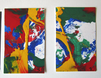 dreams 2 - abstrakte Miniatur 8 x 5 cm !!! inklusive Passepartout 23 x 23 cm - kleine 8 x 5 cm Papierarbeit mit Acrylfarbe auf Aquarellkarton in einem geschliffenem Passpartout mit versetztem Auschnitt - Bildaussschnit 4,6 * 7,4 cm !!! Sie kaufen hier ein Original Acrylgemälde von mir auf Aquarellblock mit naturfarbenem 280 g. Aquarellkarton. Das Werk ist mit Abschlussfirnis versehen und vorne signiert. Verkauf ungerahmt.