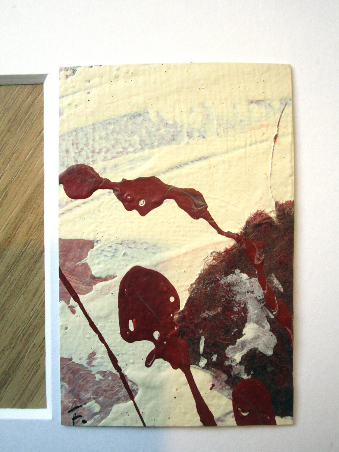 Miniatur 8 x 5 cm !!! inklusive Passepartout 23 x 23 cm - kleine 8 x 5 cm Leinwandarbeit mit Acrylfarbe und zum Teil Papiercollage auf unbefestigter geschnittener Leinwand in einem geschliffenem Passpartout mit versetztem… Auschnitt - Bildaussschnit 4,6 * 7,4 cm !!! Sie kaufen hier ein Original Acrylgemälde von mir. Das Werk ist mit Abschlussfirnis versehen und vorne signiert. Verkauf ungerahmt.