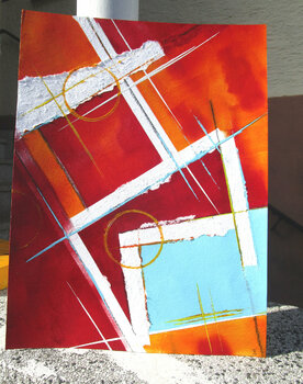 Meine Farbwahl für Lebensfreude, Neustart, Hoffnung, Licht und Energie. Ich möchte zeigen, dass trotz Brüchen in der Oberfläche und kleineren Abrissbereichen positive Schwingung und Hoffnung möglich ist.