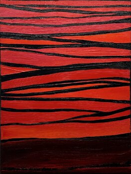 Dieses Stück verkörpert die warme Essenz der Dämmerung und vereint Minimalismus mit dynamischem Ausdruck. Mit strukturierten Acrylfarben versuchte ich, das Auf und Ab der zarten Umarmung des Zwielichts einzufangen, das zum Nachdenken und zur Gelassenheit einlädt. Jeder Pinselstrich ist eine Melodie der Leidenschaft, eine abstrakte Symphonie, die den Betrachter dazu einlädt, in den Schichten aus Purpur und Obsidian seinen eigenen Sommernachtsfrieden… zu finden. Es ist mehr als ein Gemälde; Es ist eine Erfahrung, eine Anziehungskraft auf die innere Ruhe.