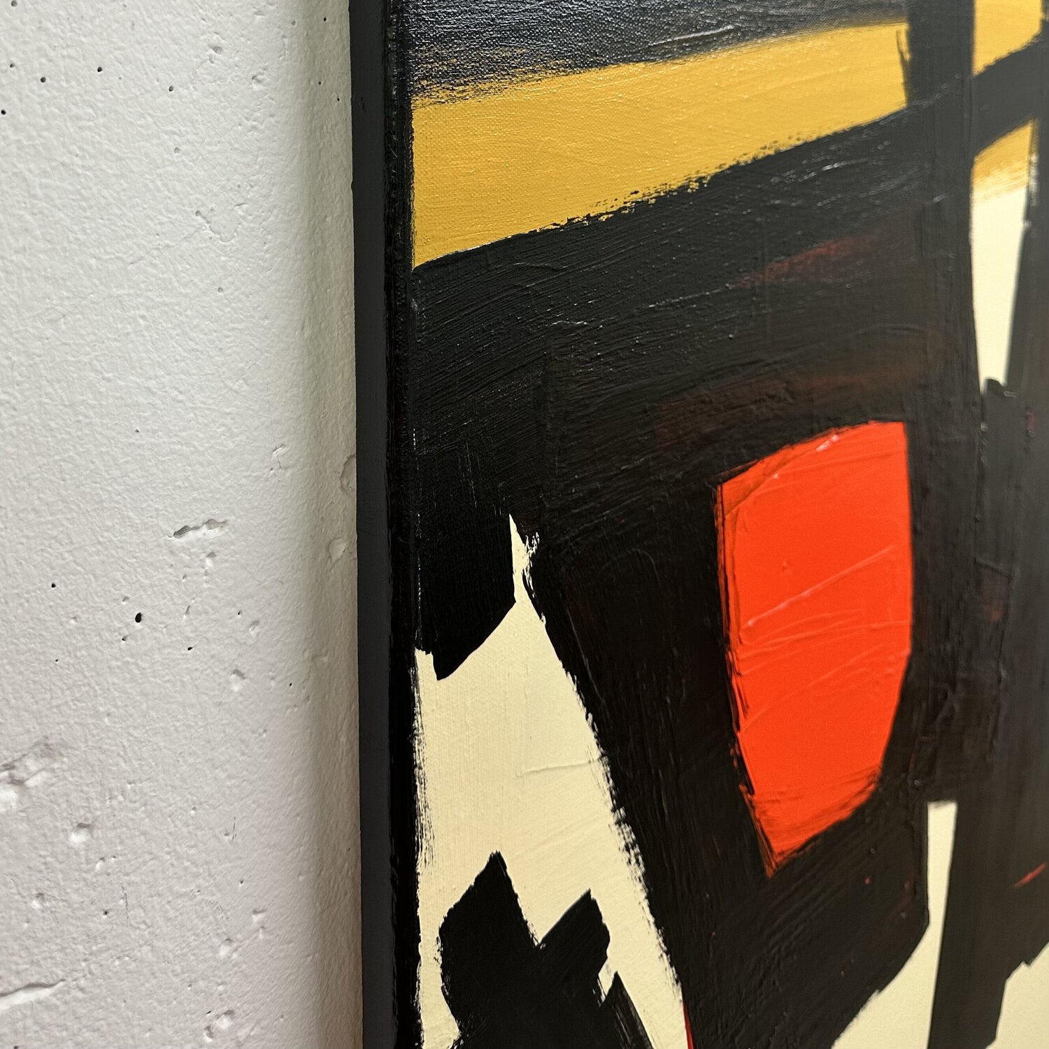 In diesem Acrylgemälde habe ich rohe Emotionen durch kräftige, schwungvolle Striche kanalisiert und feurige Rottöne tiefen, nachdenklichen Schwarztönen gegenübergestellt, um die Leidenschaft und Komplexität des Lebens einzufangen. Es ist ein Gespräch voller Kontraste, das den Tanz des Lebens zwischen Chaos und Ordnung verkörpert. Dieses Stück soll zum Nachdenken anregen und die Umgebung mit dynamischer Energie erfüllen.