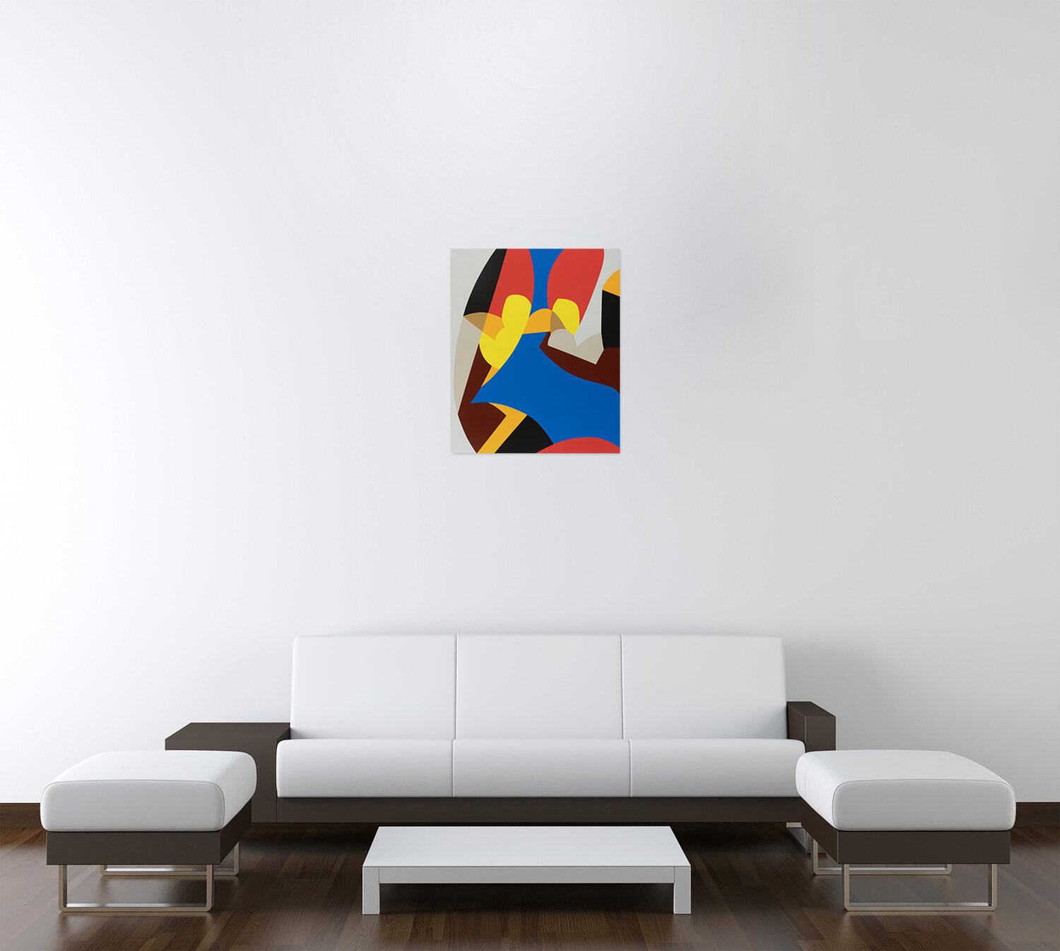 Im Atelier verzichte ich bewusst auf Figuren und narrative Elemente. So kann ich mich auf die Beziehungen zwischen Farben und Formen konzentrieren. Auf der Leinwand interagieren sie, verändern sich und erwachen zu einer dynamischen Präsenz.