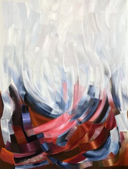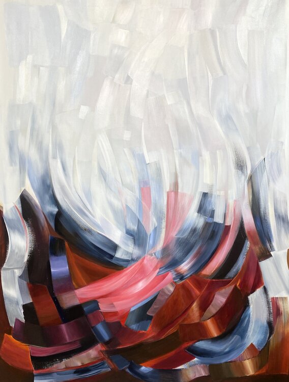 Bei diesem Acrylgemälde auf Leinwand habe ich mich für eine abstrakte Darstellung der Naturkräfte Feuer und Wind entschieden. Anstelle buchstäblicher oder erkennbarer Formen habe ich eine Reihe dynamischer, fließender Pinselstriche verwendet, um die Essenz dieser Kräfte hervorzurufen. Die Rot- und Orangetöne unten sind keine echte Glut, sondern eine abstrakte Interpretation von Energie und Wärme. Die Kurven und Wirbel der Pinselstriche suggerieren… Bewegung, ohne sie konkret zu definieren, und ermöglichen der Fantasie des Betrachters, das Bild zu vervollständigen.