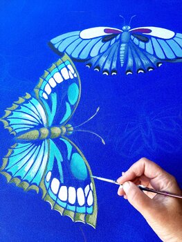 Im Diptychon „Butterfly Breakout“ (2 Leinwände x 70x100 cm oder 140x100 cm) möchte ich über das Zusammenspiel von unberührter Natur und städtischem Leben nachdenken. Die Menschheit muss sich der Konsequenzen ihres Handelns viel stärker bewusst sein. Die Natur scheint zerbrechlich, aber in Wirklichkeit ist sie sehr mächtig. Die kräftigen Schmetterlinge, leuchtend vor ruhigem und stürmischem Blau, symbolisieren Widerstandsfähigkeit und Wachstum inmitten… gebrochener Grenzen, die durch fragmentierte, ziegelartige Texturen symbolisiert werden. Dieses Kunstwerk soll ein Gefühl des Ausbrechens aus Zwängen hervorrufen, Optimismus und Veränderung in Ihren Raum inspirieren, ihn mit Energie erfüllen und Sie an die endlosen Möglichkeiten jenseits der Mauern erinnern, denen wir gegenüberstehen.