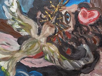 Das Gemälde zeigt das heilige Bild von Jesus Christus, der am Kreuz leidet und wegen seines Schmerzes vor Qual schreit. Dies ist eine neue Art der Darstellung des Motivs, da er normalerweise gekreuzigt, aber gelassen dargestellt wird. Stattdessen ist der Schrei gerade das Zeugnis des menschlichen Leidens, das Jesus aus erster Hand erlebt hat, der ein Mensch unter Menschen wurde. Die Taube versucht, das Leiden Jesu zu lindern, der sich am Kreuz windet.… Auch hier zeigt sich der im Grunde naive Stil des Künstlers in den Gesichtszügen des Arms und der Lippen Jesu. Das Kunstwerk wurde auf Leinwand mit hochwertigen Acrylfarben geschaffen; Das Kunstwerk ist nicht gerahmt, sondern kann sofort aufgehängt werden, da der Künstler ein Seil an der Rückseite der Leinwand befestigt hat. Das Werk wird besonders denjenigen empfohlen, die reflektierende, meditative, religiöse und spirituelle Gemälde lieben. Perfektes Werk für diejenigen, die Literatur und Geschichte lieben.