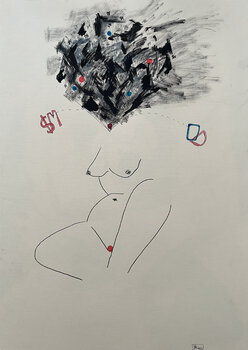 - Technik : Tusche, Buntstift auf Papier