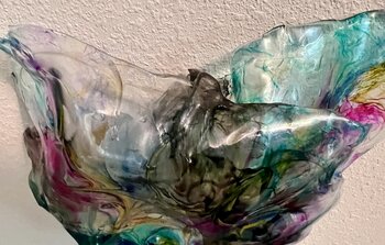 Bei der Schaffung dieser Skulptur wollte ich die Fließfähigkeit und Transparenz von Harz und Epoxidharz nutzen, um ein Gefühl von Tiefe und Bewegung zu erzeugen. Die leuchtenden türkisfarbenen Streifen, die den dunklen, schattigen Tiefen gegenübergestellt werden, repräsentieren die unzähligen menschlichen Emotionen, die unter der Oberfläche brodeln. Dieses Werk reflektiert die Komplexität unseres Innenlebens und soll den Betrachter zur Selbstreflexion… anregen. Es wird jedem Raum ein dynamisches und zum Nachdenken anregendes Element verleihen.