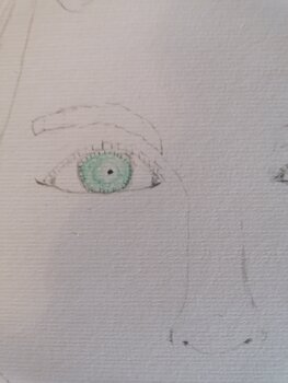 In dieser Zeichnung wollte ich die Zartheit der menschlichen Seele durch einfache, aber ausdrucksstarke Linien einfangen. Ich habe einen realistischen Minimalismus gewählt, um jene Blicke hervorzuheben, die mehr sagen als Worte, wobei die Farbe der Augen wie ein Funke grünen Lebens wirkt. Ich hoffe, sie gefällt Ihnen. Vielen Dank. Lhandy. Gezeichnet auf dickem Fabriano-Papier.