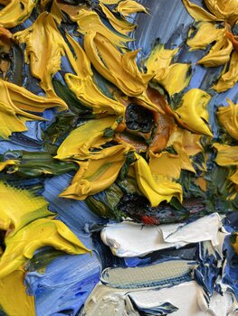 « Meine künstlerische Vision ist es, eine Reise der Freude und Verbindung mit meinen glücklichen Gemälden zu teilen. Ich möchte meine vielschichtige Geschichte mit energischer Leidenschaft erzählen. »