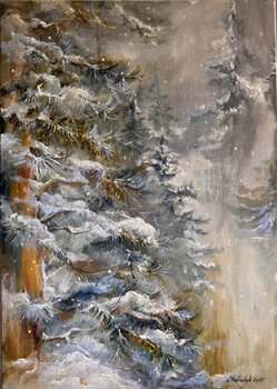 In diesem Gemälde habe ich mein ganzes Herzblut in die stille Erhabenheit eines verschneiten Waldes gesteckt. Mit Acryl und Öl habe ich ausdrucksstarke Pinselstriche übereinandergelegt, um die Kälte und Stille impressionistisch einzufangen. Jeder frostbedeckte Zweig erzählt eine Geschichte von Widerstandskraft und Frieden. Ich wünsche mir, dass dieses Werk Ihrem Raum eine heitere, frische Energie verleiht und zu stiller Besinnung und einem Hauch… der sanften Anmut des Winters einlädt.