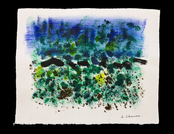 Hochwertige Sennelier-Schellacktinte auf handgeschöpftem Hosho-Papier, hergestellt vom Papiermeister Shohachi Yamaguchi in der Präfektur Fukui, Japan. Das Papier hat eine weiße, weiche Oberfläche. 85 g/m², 100 % Sulfitzellstoff.