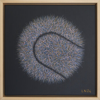 Notarnicolas Werke erforschen die Bildfläche als dynamischen Raum, in dem Muster, Farbe und Form miteinander interagieren. Die wiederholte Markierung ist kein dekoratives Element, sondern eine Struktur, die das visuelle Feld ordnet, Rhythmus erzeugt und das Kunstwerk konstruiert.