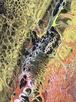 "Fragmente der Unendlichkeit" fängt das Wesen des Kosmos durch ein faszinierendes Zusammenspiel von Farben und Texturen ein. Das Gemälde weckt ein Gefühl der Endlosigkeit, in dem jede Drehung und Welle einen Moment in der Zeit darstellt, der eingefroren, aber doch fließend ist. Reiche Erdtöne, tiefe Schwarztöne und ätherische Goldtöne verschmelzen nahtlos und symbolisieren das Ineinandergreifen von Natur und Universum. Die vertikale Komposition lädt… die Betrachter ein, nach oben zu reisen, und deutet auf die unendlichen Möglichkeiten hin, die vor uns liegen. Jedes Fragment erzählt eine Geschichte und lädt zur Kontemplation und Reflexion über die Weite des Daseins und unseren Platz darin ein.