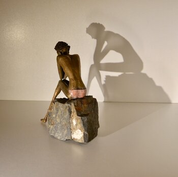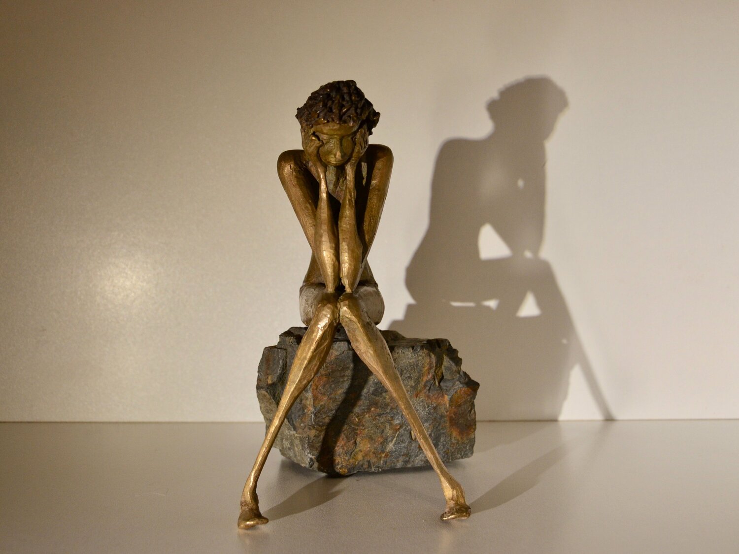 Auf einem Kieselstein platzierte Bronzearbeit.