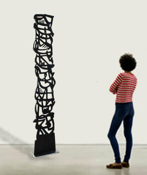 Diese "Skulptur - Schrift" aus Eichenholz, ein imaginäres Ideogramm, rast leicht in Richtung Himmel, während sie mit Licht und Schatten spielt. Das Schreiben ist locker, dynamisch, sinnlich.