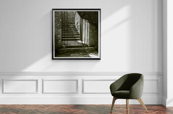 Das Licht fällt schräg auf Stufen und Mauerwerk und hebt die rauen Strukturen, Flecken und Altersnarben hervor. So wird der Aufgang zu einer stillen Einladung und zugleich zu einer subtilen Zurückweisung. In dieser Ambivalenz entsteht das Labyrinthhafte: Orientierung ist gegeben – der Weg liegt klar vor mir –, doch er endet an einer unsichtbaren Regel. Mich fasziniert dieses Zusammenspiel aus Führung und Verwehrung, aus Versprechen und Grenze, das den dahinter liegenden Raum in ein Rätsel verwandelt.
