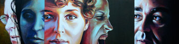 Das interaktive Bild besteht aus "offenen" Materialien: 4 Gesichter (oder Körper) auf modularen und austauschbaren 30x30 cm… Holzplatten, die je nach Wahl des Benutzers, der die Position bestimmt, unterschiedliche Bedeutungen annehmen können und zu den unzähligen möglichen Kompositionen beitragen . Die Montage ist dank der Magnete sehr einfach. Somit wird das ästhetische Erlebnis sowohl vom Künstler als auch vom Benutzer geteilt. Die Paneele können an der Wand oder auf dem Boden montiert werden. Sara ist das weibliche Subjekt, das uns ansieht und mit dem die anderen Subjekte durch Erinnerungen, Beziehungen, Obsessionen verbunden sind.