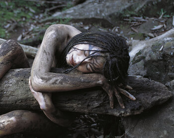Ich schuf die Elemental-Serie 1996 und begann 1997 mit der Produktion von Fotoessays. „Symbiose“, einer der ersten Essays der Serie, konzentriert sich auf die Natur und das menschliche Element. In diesem Bild fand ich die Verkörperung meiner Ausdrucksform, die Essenz dessen, was ich sagen möchte. Dieses Bild drückt alles auf einfache, minimalistische und originelle Weise aus. Symbiose, der Trost, den wir in der Natur finden können, der Respekt für… Fauna und Flora sowie für uns selbst und unseren Alltag zeigt. Die Figur ist vollkommen entspannt, zeigt all ihre Zuneigung und schmiegt sich an einen umgestürzten Baumstamm auf dem Weg. Ich weiß, dass selbst dieses umgestürzte, scheinbar tote Stück Baum neues Leben hervorbringen wird, kleine Tiere schützt und Tausenden von Lebewesen Nährstoffe liefert, die keimen und ein neues Leben beginnen. Fotografiert mit transparentem Farbpositivfilm, Pentax 6x7cm Kamera. Ursprünglich 1997 mit einem hochauflösenden CMYK-Zylinder-Hell-Scanner gescannt. Die Originaldatei ermöglicht große Drucke auf Kunstdruckpapier.