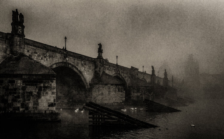 In ihrer monochromen Stille scheint die Karlsbrücke zwischen Vergangenheit und Ewigkeit zu schweben. Jeder Stein atmet eine stille Erinnerung an Liebende, Wanderer und mondhelle Nächte. Eine Schwarz-Weiß-Interpretation der Karlsbrücke… unterstreicht ihre zeitlose Atmosphäre und ihren historischen Charme. Das Bild fängt die Stimmung eines noch in Ruhe gehüllten Prags am frühen Morgen ein.