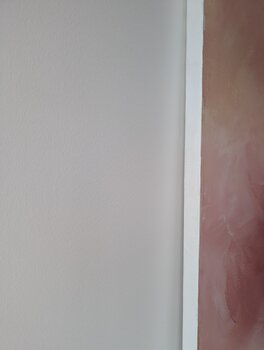 „Ein lebenswerter Tag“ besteht vollständig aus warmen Farbtönen, die sanft ineinanderfließen, ohne harte Kanten, ohne deutliche Spuren. Die Farbe verschmilzt zu einem fließenden, atmosphärischen Feld. Rosa, Pfirsich und Koralle fließen in langsamen, kreisenden Bewegungen ineinander. Der Pinselstrich ist nur dort sichtbar, wo die Farbe unten rechts am dichtesten aufgetragen ist, wo sich aus der umgebenden Weichheit ein tieferes Rosa abzeichnet.