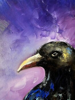 Bei der Schaffung dieses Ölgemäldes habe ich die rohe Energie des Expressionismus genutzt, um das Rätsel der Existenz durch die stille Wachsamkeit eines Raben einzufangen. Die dicken, leidenschaftlichen Pinselstriche und die reiche, kontrastreiche Palette rufen ein Gefühl von Geheimnis und Selbstbeobachtung hervor. Dieses Kunstwerk ist ein Spiegel der Seele, der zum Nachdenken einlädt und jedem Raum eine kraftvolle, kontemplative Präsenz verleiht.