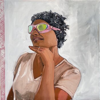 Dieses Werk entstand aus meiner Freude an Kontrasten – die glänzenden, fast futuristischen Brillengläser aus Graffiti-Tönen vereinen sich mit der warmen, realistischen Öl-Malerei der Haut. Es feiert Selbstbewusstsein und Lebensfreude, eingefangen in einem lockeren, dennoch ausdrucksstarken Moment. Dieses Bild bringt eine dynamische, positive Energie in jeden Raum und lädt zum Verweilen und Staunen ein.