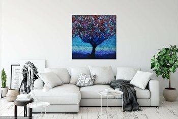 Dann gibt es dennoch eine Lösung, denn der Künstler arbeitet auch auf Kommission. Er kann stilistische Elemente, die Ihnen gefallen, in einem für Sie kreierten Werk einfließen lassen. Sie können dabei die Dimensionen bestimmen und wir verhandeln den Preis für Sie.
