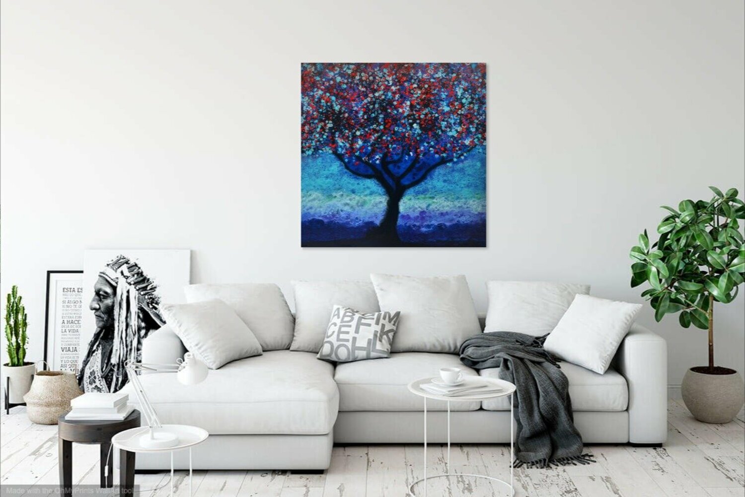 Bei der Herstellung dieses Stücks wollte ich die lebendige Essenz von Sorrent, Italien, einfangen. Mit Harz und Pigmenten habe ich mich dem Impressionismus verschrieben, um die emotionale Tiefe und Energie der Region zu vermitteln, die sich in einem Baum manifestiert, der Wachstum und Kraft symbolisiert. Die Farben sind ein leidenschaftlicher Tanz zwischen Land und Meer, eine Naturleinwand aus aufsteigenden Blau- und feurigen Rottönen, die den Betrachter… in eine strukturierte Traumlandschaft einlädt. Dieses Kunstwerk ist eine eindrucksvolle Symphonie, die Leben und Inspiration in jeden Raum, in dem sie sich befindet, ausstrahlen soll.