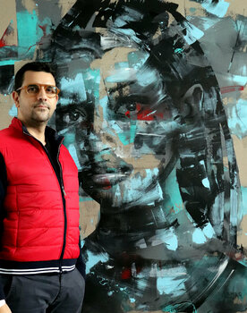 Mario Henrique ist ein leidenschaftlicher portugiesischer Maler, der seine Arbeiten in Portugal, Brasilien, Deutschland und den USA ausgestellt hat. Für immer fasziniert von den Feinheiten und der doppelten Bedeutung von Körpersprache, Ausdruck und Aussehen der Menschen, komponiert er Werke um Menschen. Er verwendet seine Portraits, um die Unbeständigkeit von Mimik und Unberechenbarkeit menschlicher Bewegungen darzustellen und malt abrupt und spontan in Tropf- und Spritzwasser.