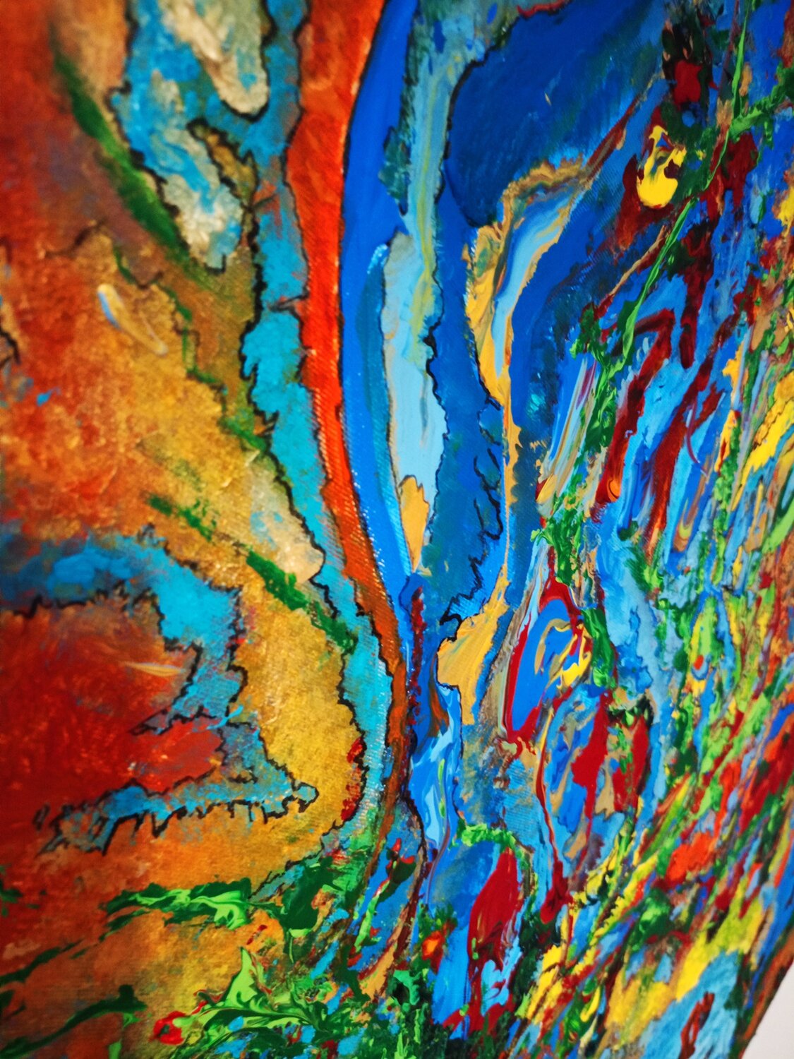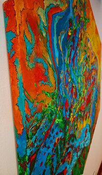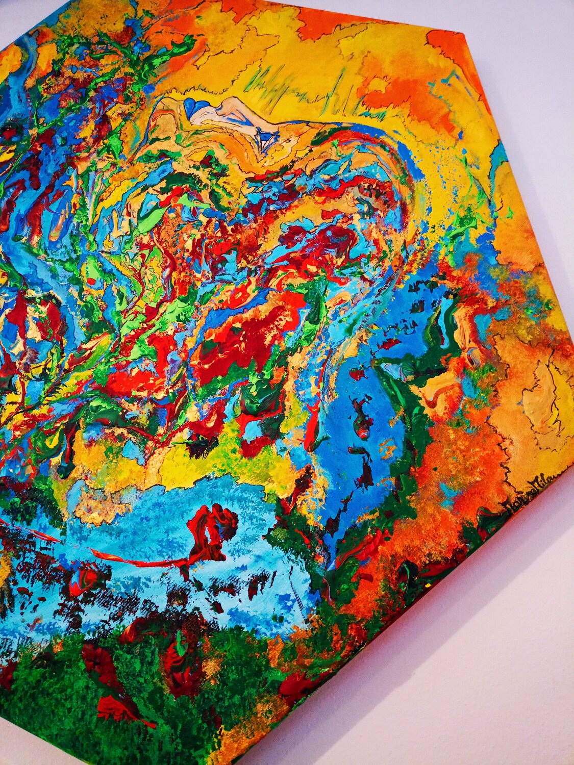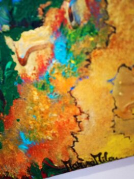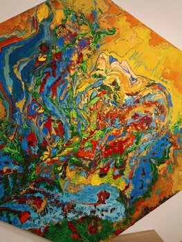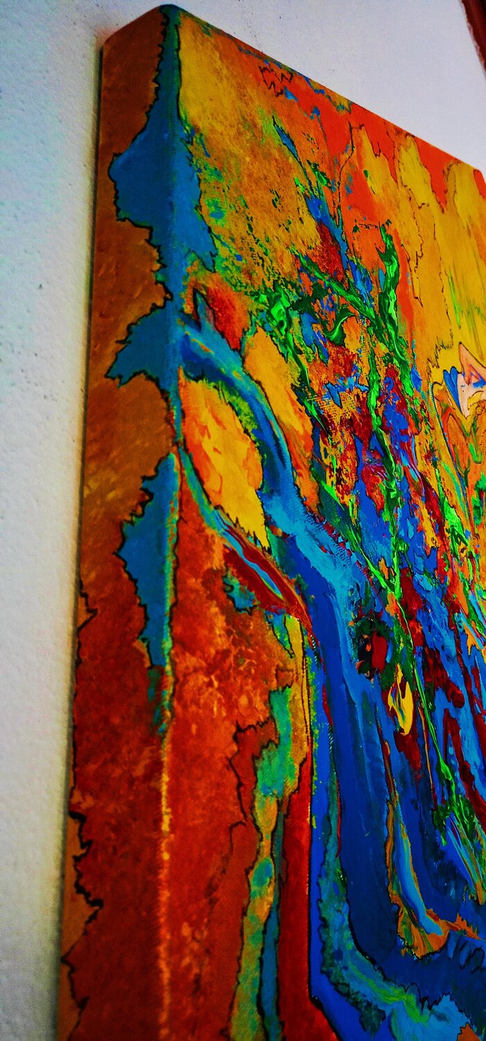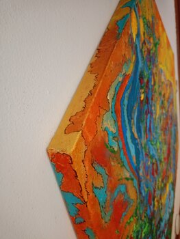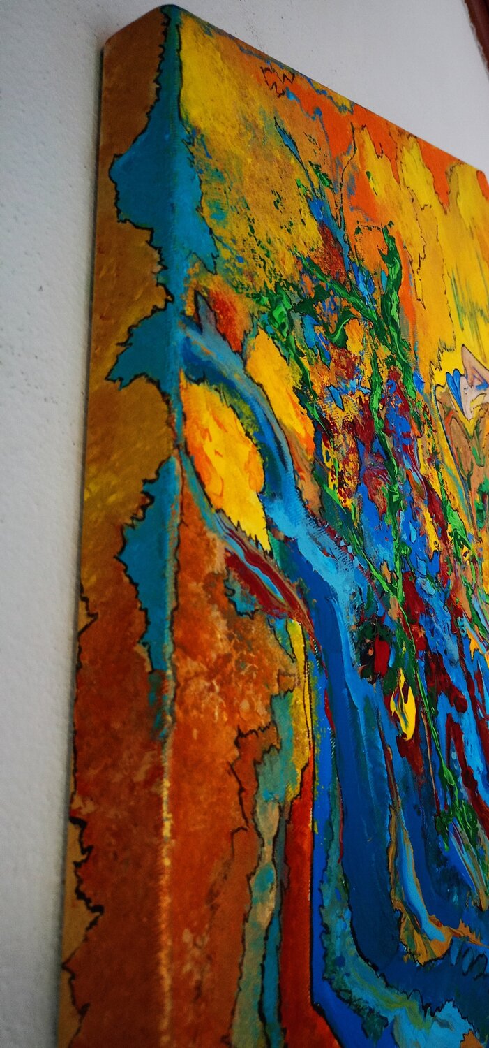 Darstellung der verschiedenen Gefühlszustände. Das Leben ist intrinsisch, artikuliert und voller Facetten und wir öffnen uns ihm, indem wir nach einem Gleichgewicht suchen. Die vier Elemente: Erde, Wasser, Feuer und Luft sind Träger der subtilsten Energien des Universums und wir Botschafter der Positivität geben einen Schlüssel zum Verständnis, indem wir ein inneres Gleichgewicht zusammenfassen. Als Ausdruck des Wachstums der Stärke muss der Samen… seinen Weg aus der Erde finden, um aufzutauchen. ein Aufruhr der Gefühle und tiefen Bedeutungen. Diese Kreation bringt das Leben als einen unaufhörlichen und dynamischen Fluss zum Ausdruck, in dem leuchtende Farben und lebhafte Bewegungen die ständige Metamorphose der Existenz darstellen. Durch abstrakte Formen und Symbolik habe ich versucht, die metaphysischen Saiten der menschlichen Seele zu berühren und den Betrachter einzuladen, über sein eigenes Leben und die unsichtbaren Verbindungen nachzudenken, die uns mit dem Universum verbinden. Diese Leinwand ist nicht nur ein Kunstwerk; Es ist eine transformierende Erfahrung, die jedem Raum Energie und Kontemplation verleiht.