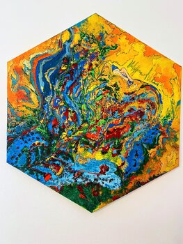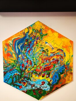 Er beschreibt seinen künstlerischen Ausdruck als Übersetzung der existenziellen Energie, die durch die vier Elemente Erde, Wasser, Feuer und Luft repräsentiert wird. Es überträgt Empfindungen und Emotionen durch die Schwingungskraft der Farbe. Seine außergewöhnlichen Kompositionen entstehen mit Acryl- und Ölfarben auf Leinwand.