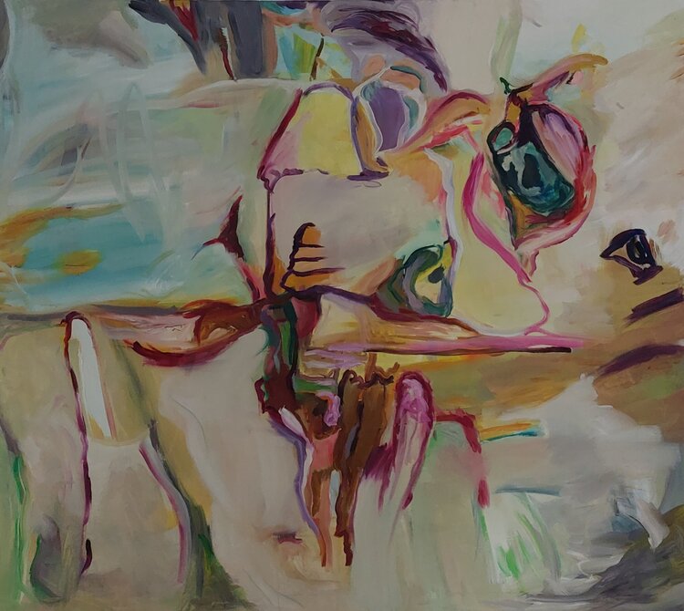 Dieses Gemälde ist ein emotionales Beben auf Leinwand. Es beschreibt eine Welt, die aus den Fugen gerät, Kopf steht, deren Fundament verschoben ist. Die Formen wirken wie Erinnerungen, die sich auflösen, zerfließen, neu zusammensetzen. Farben prallen aufeinander, als könnten sie sich nicht mehr einigen, was oben und was unten ist. Linien ziehen sich durch das Bild wie Nervenbahnen, wund und offen. Nichts ist mehr sicher. Die Welt bricht in Scherben,… jede mit einem anderen Blickwinkel, einem anderen Fragment dessen, was einst unsere Wahrheit war. Das ehemals Ganze erscheint nun als ein Kaleidoskop. Verstörend schön in seinen grellen Farben und gleichzeitig offen für neue Räume.