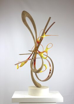 „Wie bei vielen meiner Stücke war die geschnitzte und dampfgebogene Eiche der erste Schritt. Die Formen gaben mir ein Gefühl der Ausdrucksfreiheit. Die Natur hat in meiner Arbeit immer eine potentielle Resonanz, und diese Arbeit verlief auf natürliche Weise in diese Richtung. Ich habe nie vor, etwas Bestimmtes… zu machen, aber wenn die Formen und Gefühle mich in eine bestimmte Richtung führen, gehe ich mit, um zu sehen, wohin es mich führt. Ich öffne gerne Türen, um zu sehen, was dahinter steckt …“