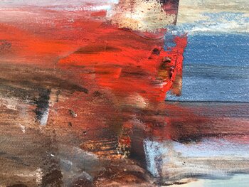 Dieses… Gemälde thematisiert den Lebenswandel. Wir alle sind Passagiere unseres eigenen Lebens und unserer eigenen Zeit. Das weibliche Gesicht, das niemandem im Besonderen entspricht, könnte dieser oder einer anderen Epoche angehören. Ihr hoffnungsvoller Blick in die Zukunft, während der Wind durch ihr Haar weht. Die Umgebung, die ich fast abstrakt gemalt habe, spiegelt symbolisch jede Lebenserfahrung wider, und das Rot die Leidenschaft, die nie fehlen darf, um uns zum Weitermachen zu ermutigen.
