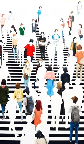 Martta García Ramo ist eine aufregende spanische Malerin mit internationaler Ausstrahlung. Sie nutzt die Kunst als Mittel, um unsere Art, auf die Welt zu reagieren, zu hinterfragen und Themen wie Macht, Menschen und Realität zu erforschen. Vorwiegend von ihren eigenen Fotografien inspiriert, komponiert sie Gemälde von Menschenmengen, die sowohl chaotisch als auch strukturiert erscheinen.