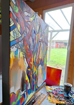 Ich versuche bei den Baummotiven die Form möglichst zu erhalten und die Abstraktion vor allem in