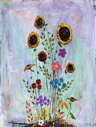 Bei der Schaffung dieses Stücks habe ich mich darauf konzentriert, durch das Ausdruckspotenzial von Ölen und Wachs lebendige Vitalität und heitere Schönheit zu kanalisieren. Die Verflechtung von Expressionismus mit minimalistischen Akzenten spiegelt die Harmonie und Einfachheit der Natur wider. Hochstehende Sonnenblumen symbolisieren Widerstandskraft und Optimismus, während die sanften Farbtöne und Texturen ein Gefühl von Frieden hervorrufen. Dieses… Kunstwerk soll einen Ausbruch von Leben und Inspiration in jeden Raum bringen und den Raum mit seiner temperamentvollen Essenz und beruhigenden Präsenz beleben.