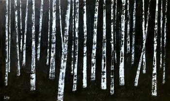 Sehr minimalistische monochrome Malerei im Noir-Stil. Ich liebe es, im Wald zu spazieren und dieses Gemälde stellt die Seele dar, die in den inneren dunklen Wald unseres Abgrunds eindringt, mit starkem Licht auf einer Seite.