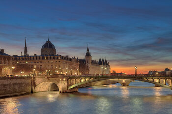 Eine Prinzessin unter den Schönheiten der Seine: Es war einmal die Conciergerie von Paris, dieser majestätische, einsame Wächter am Wasser. Das Bild zeigt einen schwebenden Moment, in dem sich das goldene Licht der Straßenlaternen im ruhigen Wasser der Seine spiegelt, während der sanfte und beruhigende blaue Himmel die zeitlose Schönheit des Denkmals widerspiegelt. Die Conciergerie scheint in einen urbanen Traum getaucht zu sein, in dem Vergangenheit… und Gegenwart in einem sanften, poetischen Licht aufeinandertreffen und dem Ort eine fast magische Dimension verleihen, wie eine Einladung, Paris in einem neuen Licht wiederzuentdecken.